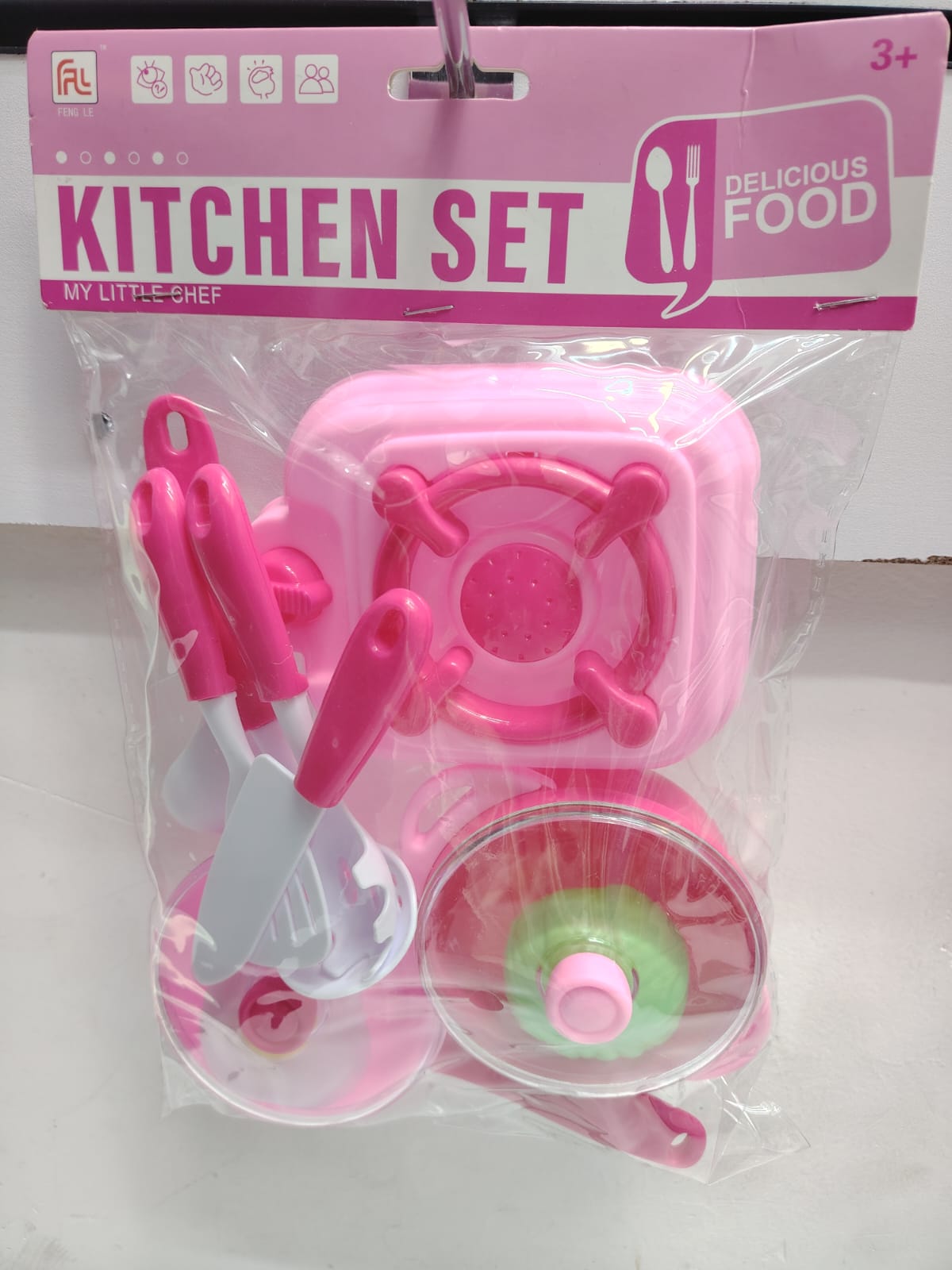 Set Includes: Stove, cookware, utensils, and assorted play food items (varies by set)